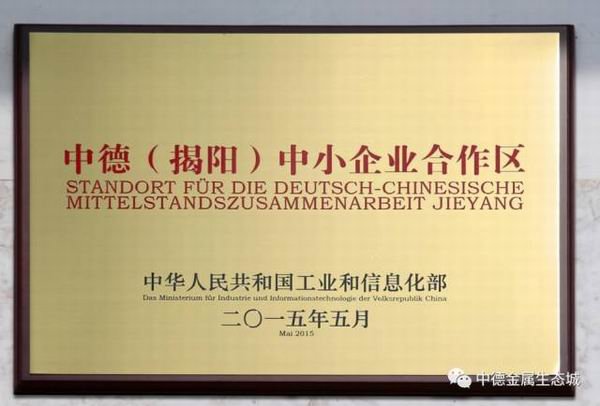 中德金屬生態(tài)城獲得國家工信部“中德(揭陽)中小企業(yè)合作區(qū)”授牌,成為華南地區(qū)首個中德中小企業(yè)合作區(qū)。