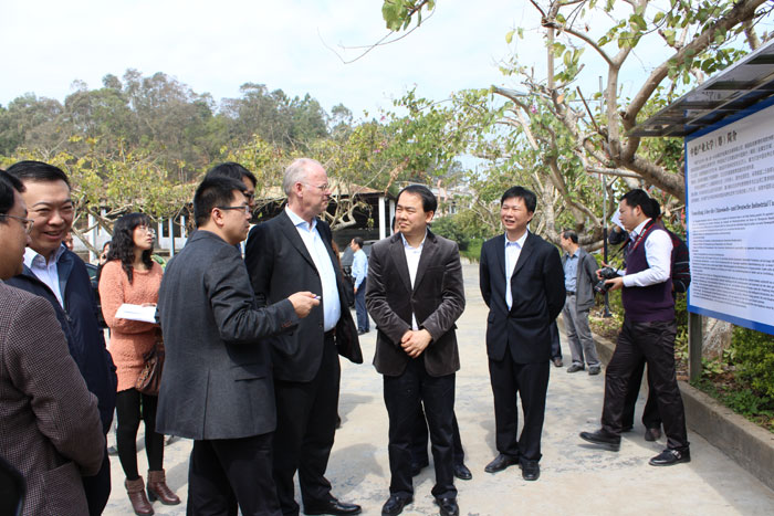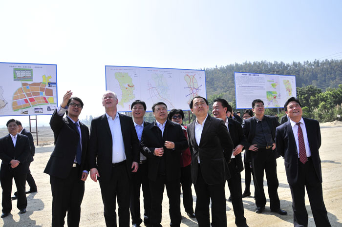 考察團一行首先到達中國南方(揭陽)金屬生態(tài)城現(xiàn)場,市領導陳東,揭東縣領導林炳華為沙爾平先生介紹了金屬城總體的布局,表示金屬城項目建設將按照“一個中心(產(chǎn)業(yè)聚集中心)、兩個基地(生產(chǎn)加工基地、貿(mào)易物流基地)、三大平臺(科技創(chuàng)新平臺、電子商務平臺、金融服務平臺)”的定位進行規(guī)劃,建設中國“金屬原材料交易中心、金屬產(chǎn)業(yè)研發(fā)設計中心、金屬制品制造中心、金屬機械制造中心、金屬產(chǎn)品銷售中心、金屬行業(yè)人才技工基地、金屬行業(yè)金融中心”七大板塊。隨后,考察團來到中德產(chǎn)業(yè)大學園區(qū)參觀,考察團先后參觀了大學園區(qū)建設用地,聽取相關領導介紹大學園區(qū)規(guī)劃、布局、生活配套設施和周邊園區(qū)建設規(guī)劃。