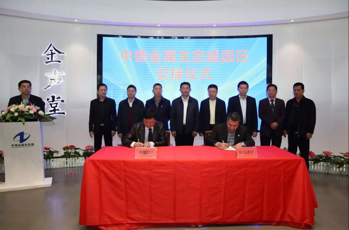 揭東區(qū)政府與中德金屬集團(tuán)簽署《中德金屬生態(tài)城基礎(chǔ)設(shè)施公共服務(wù)配套及園區(qū)管理權(quán)限移交協(xié)議書》等4個(gè)協(xié)議和《揭陽市政府對德(歐)服務(wù)購買合同》