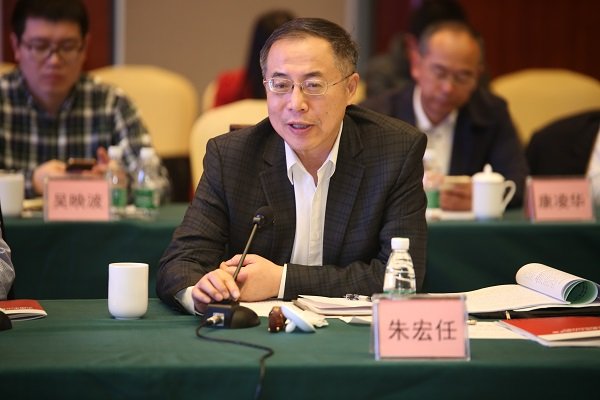 ▲中國企業(yè)家聯(lián)合會(huì)常務(wù)副會(huì)長兼理事長,工業(yè)和信息化部前黨組成員、總工程師朱宏任發(fā)言