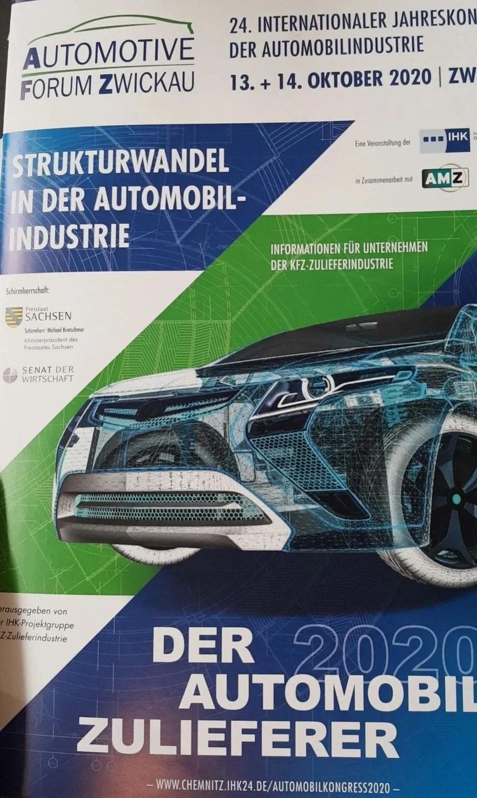 薩克森州擁有500年的汽車工業(yè)基礎(chǔ),寶馬、大眾、保時捷在薩克森州都有整車廠,并設(shè)有核心零部件工廠。將近800家零部件公司分布在薩克森各個城市工業(yè)區(qū)。在薩克森州州長Michael Kretschmer 先生的倡導(dǎo)及支持下,約150家行業(yè)領(lǐng)先企業(yè)負(fù)責(zé)人受邀參會。茨維考新任市長Constance Arndt 女士在會中發(fā)表了重要講話。此次會議主要分三個部分,分別為實(shí)地參觀大眾新能源汽車基地,汽車零部件商商業(yè)平臺交流晚宴,以及汽車專業(yè)論壇和線上線下路演。論壇主題多樣,有針對性,重點(diǎn)聚焦新能源鋰電池的回收與環(huán)保 、疫情下德國汽車工業(yè)的趨勢與措施、中國汽車市場的與德國汽車市場的比較、汽車行業(yè)的轉(zhuǎn)換之新能源汽車和氫能源汽車等熱點(diǎn)。