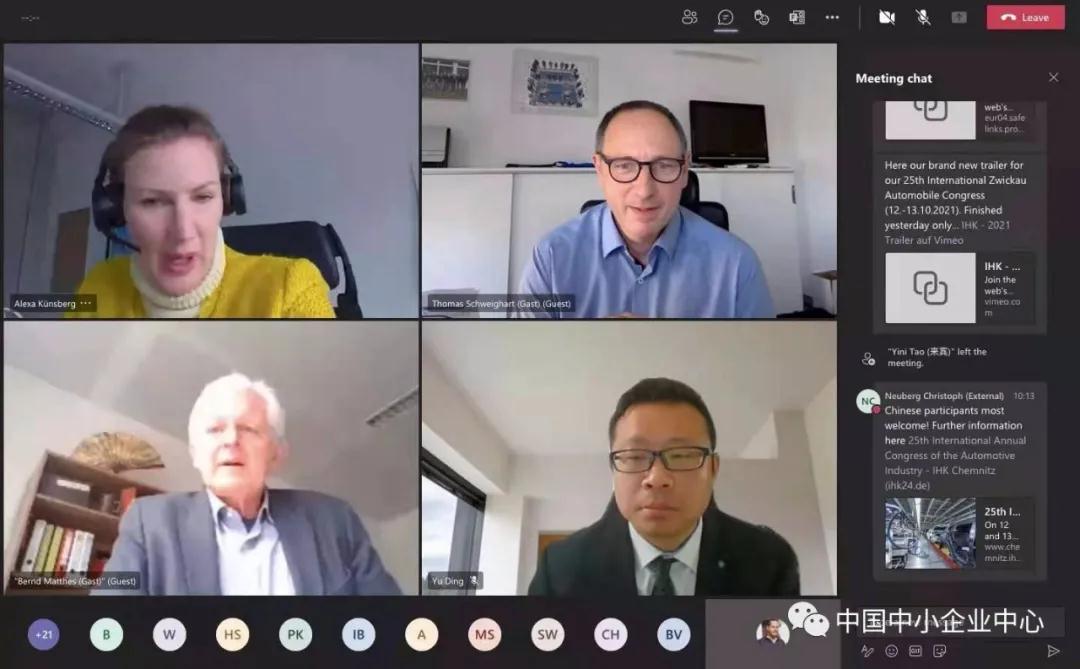 △ 中國中小企業(yè)中心(德國)與開姆尼茨工商會企業(yè)家們召開線上對話會
