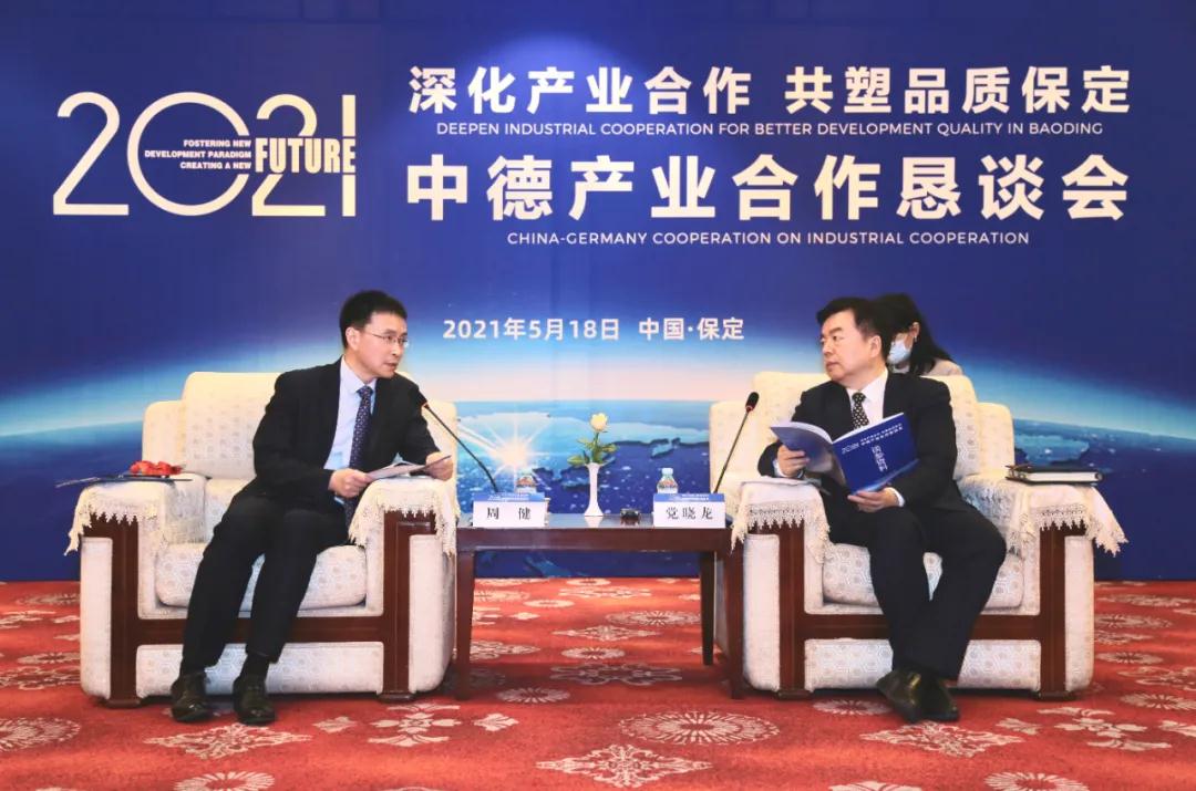 5月18日,以“深化產(chǎn)業(yè)合作 共塑品質(zhì)保定”為主題的2021中德產(chǎn)業(yè)合作懇談會(huì)在電谷國(guó)際酒店隆重召開(kāi)。省商務(wù)廳廳長(zhǎng)張鋒、前聯(lián)邦德國(guó)國(guó)務(wù)秘書(shū)弗里德黑爾姆·奧斯特、德國(guó)賓根市長(zhǎng)托馬斯·費(fèi)瑟、德國(guó)西南金屬與電子企業(yè)聯(lián)合會(huì)干事長(zhǎng)蒂姆·文庭、德國(guó)梅森博格集團(tuán)董事長(zhǎng)馬丁·梅森博格視頻寄語(yǔ)。工信部中小企業(yè)發(fā)展促進(jìn)中心副主任周健,保定市委副書(shū)記、代市長(zhǎng)閆繼紅現(xiàn)場(chǎng)致辭。中國(guó)中小企業(yè)中心(德國(guó))作為活動(dòng)協(xié)辦單位參加本次會(huì)議。