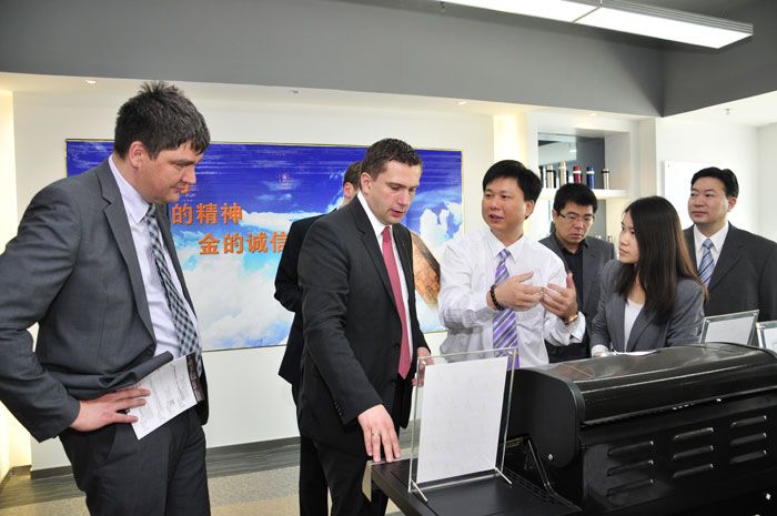 市長助理麥延厚首先對杜里希一行的到來表示熱烈歡迎。隨后雙方共同聽取了中德金屬生態(tài)城城市規(guī)劃設計報告,對金屬生態(tài)城項目的總體情況有進一步的了解。杜里希先生在產(chǎn)品質(zhì)量、教育模式、基礎設施、能源消耗等方面向我方代表介紹了的德國工業(yè)政策,以及德國企業(yè)家在中國太倉投資的經(jīng)驗與遇到的問題。杜里希先生表示,希望中德雙方在平等的層面上共商合作、相互借鑒,并以教育培訓和產(chǎn)品質(zhì)量作為切入點,最終實現(xiàn)中德金屬生態(tài)城的宏偉藍圖。