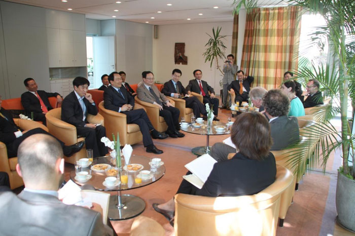 2013年5月30日,在李克強總理成功結束德國訪問之行,掀開兩國合作新篇章的關鍵時刻,揭陽市市長陳東率團赴京專程拜訪德國駐華大使館,就兩國在中德金屬生態(tài)城開展合作與德國駐華大使施明賢博士進行深入交流,形成了加強中德合作的一系列共識。參與此次拜訪活動的還有廣東外經(jīng)貿(mào)廳副廳長陳越華,中聯(lián)部西歐局副處長孫守亮,揭陽市政府秘書長蔡榜藩,揭東區(qū)區(qū)長陳家鵬,揭陽市金屬企業(yè)聯(lián)合會會長吳克東,廣東中德雙元職業(yè)教育投資有限公司總經(jīng)理姜增彬等。