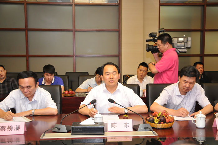 2013年6月27日晚,廣東省海事局局長梁建偉一行在揭陽市委副書記、市長陳東的陪同下,蒞臨我市金屬企業(yè)聯(lián)合會開展調(diào)研工作,為中德金屬生態(tài)城的港口布置和配套規(guī)劃出謀獻(xiàn)策。
