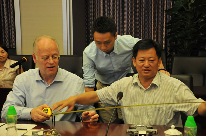 隨著中德合作日臻成熟,企業(yè)對接順利開展,2013年7月11日下午,德國前國防部長、德國社民黨前主席、RSBK魯?shù)婪蛏碃柶綉?zhàn)略咨詢交流有限責(zé)任公司總裁魯?shù)婪颉ど碃柶较壬俅物w赴揭陽,與揭陽市金屬企業(yè)聯(lián)合會進行新一輪會談,商討進一步落實中德合作成果。揭陽市長陳東,揭陽市金屬企業(yè)聯(lián)合會會長吳克東,執(zhí)行會長林眾偉,高級顧問曹白雋,以及林曉平、孫耿豪、黃烈標(biāo)、周凱練、周潮開等金屬企業(yè)家共同出席本輪會談。