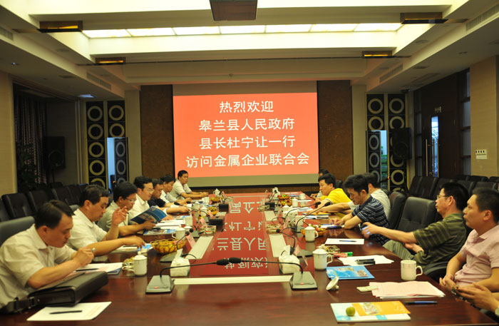 在陳東市長(zhǎng)攜揭陽(yáng)代表團(tuán)赴甘肅皋蘭縣調(diào)研并簽訂合作意向書(shū)一周之后,2013年7月15日,皋蘭縣縣長(zhǎng)杜寧讓一行在市政協(xié)副主席陳定雄、市政府副秘書(shū)長(zhǎng)林興國(guó)等的陪同下參觀考察了揭陽(yáng)市金屬企業(yè)聯(lián)合會(huì)。揭陽(yáng)市金屬企業(yè)聯(lián)合會(huì)會(huì)長(zhǎng)吳克東、執(zhí)行會(huì)長(zhǎng)林眾偉陪同參觀。
