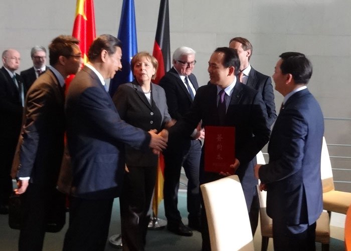 國家主席習(xí)近平在訪問德國期間,與德國總理默克爾共同發(fā)表《建立中德全方位戰(zhàn)略伙伴關(guān)系的聯(lián)合聲明》,并見證了涉及汽車、信息化、金融、節(jié)能環(huán)保等多個領(lǐng)域的中德雙邊合作文件的簽署。簽約項目中“中德資源再生基地”項目來自廣東。作為此次簽約的10個項目中唯一涉及節(jié)能環(huán)保的項目,“中德資源再生基地”落戶揭陽,由揭陽市中德金屬集團、廣東省廣晟資產(chǎn)經(jīng)營有限公司和德國歐綠保集團三方共建,是落戶在廣東揭陽的中德金屬生態(tài)城的關(guān)鍵項目。
