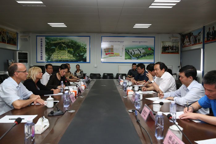 陳東與恩格爾•科樂(lè)一行在金屬生態(tài)城建設(shè)指揮部就教育培訓(xùn)合作座談