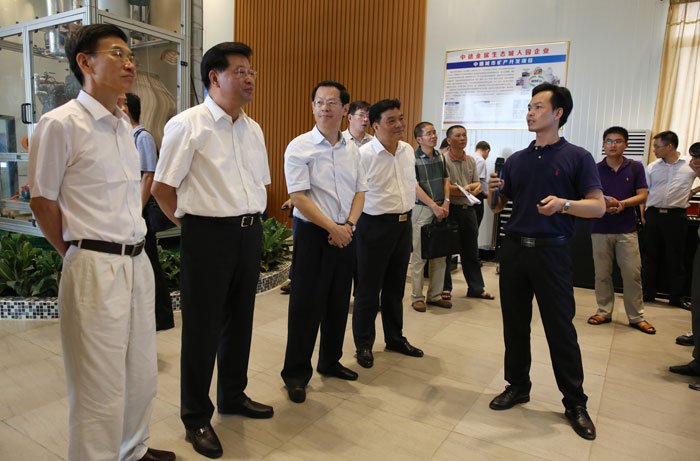 林雄一行先后參觀了表面處理中心項(xiàng)目和余熱發(fā)電項(xiàng)目的展廳,詳細(xì)了解在建項(xiàng)目進(jìn)展、環(huán)保先進(jìn)技術(shù)以及與德合作情況。林雄高度評價(jià)中德金屬生態(tài)城建設(shè)以來所取得的成績。他認(rèn)為,該項(xiàng)目搶抓全球資源重新配置的機(jī)遇,實(shí)施以德國為重點(diǎn)的國際合作,發(fā)展理念非常好;希望積極作為,扎實(shí)推進(jìn)各個(gè)項(xiàng)目落實(shí)。他還要求九三學(xué)社廣東省委充分發(fā)揮智庫作用,發(fā)揮聯(lián)絡(luò)廣泛的優(yōu)勢,促進(jìn)招商引資取得實(shí)效。