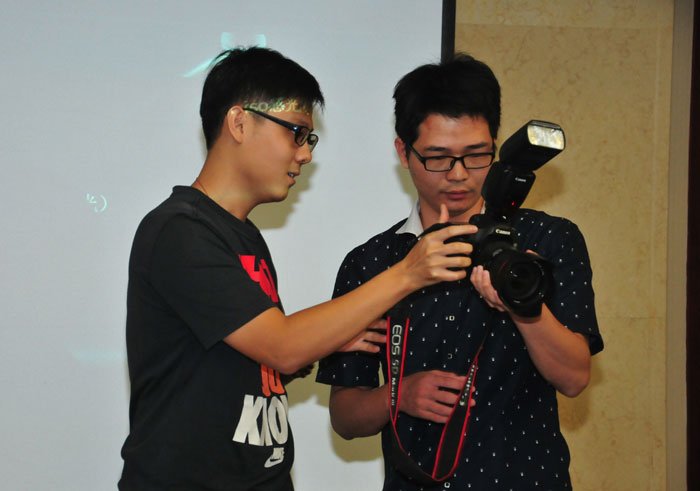 活動伊始,李敏智以視頻的形式播放婚慶拍攝的原創(chuàng)作品,唯美兼具藝術感的剪影瞬間激發(fā)了學員對攝影的濃厚興趣。隨后,李敏智就攝影器材、正確的持機方法、單反相機的基本操作等實用技能進行了全面的講解。為了加深學員對持機姿勢的認識,他還用單反現身說法,現場就學員持機的誤點進行糾正,為大家提供有益的借鑒。此外,他還結合自己的攝影經歷,采取實例與理論相結合的方式,詳細講解了攝影構圖、用光等基本知識。整場培訓下來,在座學員對攝影有了全新的認識,紛紛表示受益匪淺,期待后續(xù)的精彩培訓。