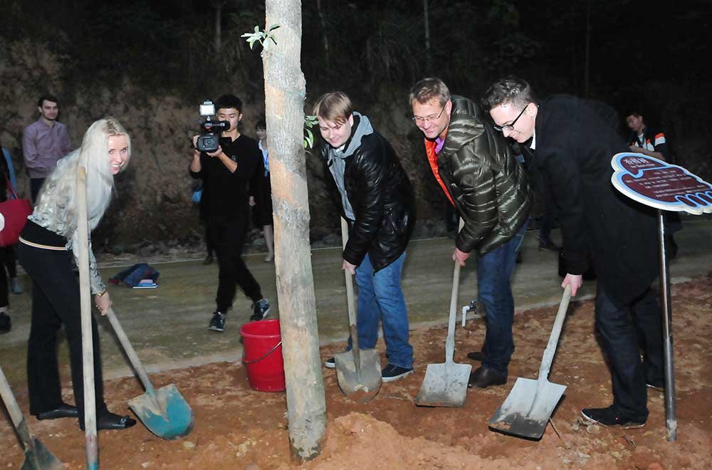 來華交流班與揭陽有關(guān)領(lǐng)導(dǎo)在萬畝森林公園共植友誼之樹