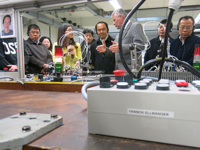 雙元制是源于德國的一種職業(yè)培訓(xùn)模式,被稱為戰(zhàn)后德國經(jīng)濟(jì)騰飛的“秘密武器”。 26日上午,代表團(tuán)一行兵分兩路,分別趕赴德國埃斯林根應(yīng)用科技大學(xué)(Hochschule Esslingen)和Waiblinggen 職業(yè)學(xué)校進(jìn)行考察學(xué)習(xí)。