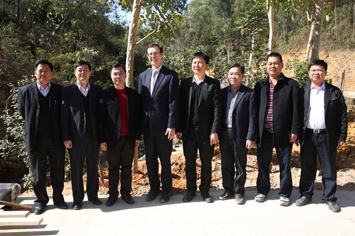 呂海慕與揭陽有關(guān)領(lǐng)導(dǎo)、中德金屬集團(tuán)董事長(zhǎng)吳克東在萬畝森林公園植樹后合影