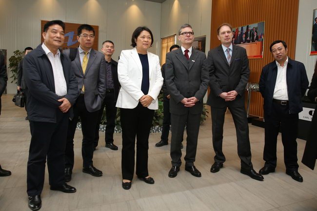 2015年3月3日,德國埃斯林根應(yīng)用科技大學副校長查耐爾斯基和博克曼一行蒞揭考察中德金屬生態(tài)城及中德雙元應(yīng)用科技大學選址,共同商討推進合作辦學事宜。市委書記、市人大常委會主任嚴植嬋等陪同活動。