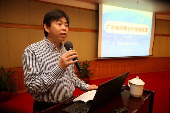 培訓(xùn)課上,來自省商務(wù)廳、科技廳、知產(chǎn)局和經(jīng)信委的有關(guān)負(fù)責(zé)人,以及銀行機(jī)構(gòu)的金融專家,結(jié)合具體例子,從專業(yè)的角度向?qū)W員企業(yè)解讀了對德合作的相關(guān)政策。省商務(wù)廳投資促進(jìn)與對外合作處副處長何定紅指出,省政府已出臺有關(guān)指導(dǎo)意見支持企業(yè)開展多形式、多領(lǐng)域的對外投資合作,這將推動廣東本土企業(yè)提升跨國經(jīng)營水平,加快形成互促互補(bǔ)、共同發(fā)展的格局。省經(jīng)信委技術(shù)改造投資處處長朱曉東表示,企業(yè)的技術(shù)改造、轉(zhuǎn)型升級離不開智能制造、設(shè)備更新和公共服務(wù)平臺的建設(shè),這也是省委省政府高度重視的課題。