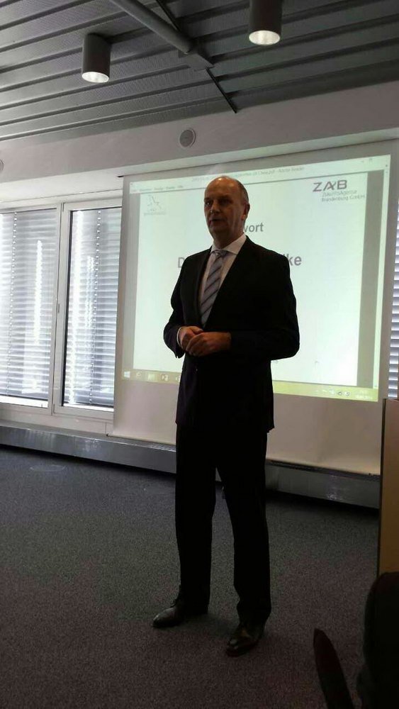 繼去年12月組團(tuán)考察中德金屬生態(tài)城并產(chǎn)生良性互動(dòng),4月17日,德國(guó)勃蘭登堡州經(jīng)濟(jì)發(fā)展局在勃蘭登堡州首府波茨坦組織舉辦了中國(guó)行準(zhǔn)備會(huì),向27家與會(huì)企業(yè)以及政府官員報(bào)告相關(guān)準(zhǔn)備情況,趁著中德中小企業(yè)交流會(huì)的契機(jī),再次率團(tuán)到揭陽(yáng)參會(huì)謀求合作。中國(guó)駐德國(guó)大使館大使施明德先生及政治處參贊王爾東應(yīng)邀出席。