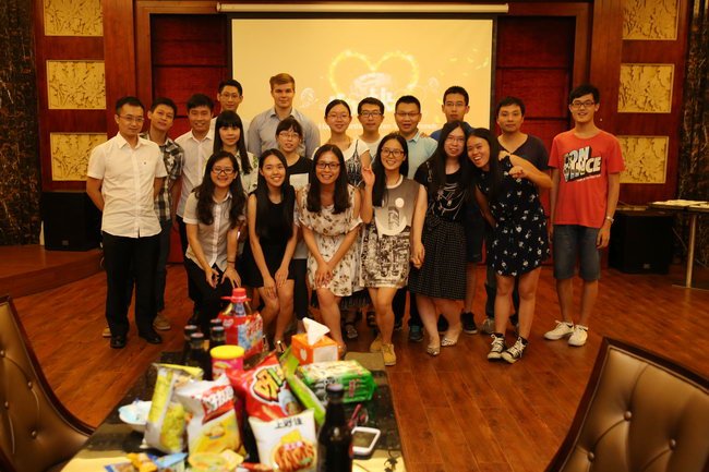 參加生日晚會的員工們聚餐后合影