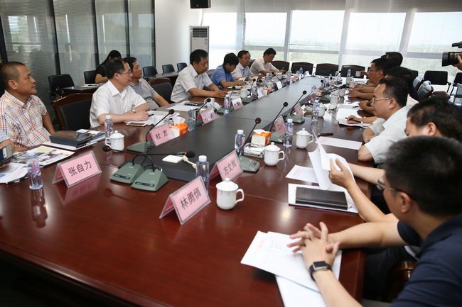 周孟波一行與陳澄民等市領(lǐng)導(dǎo)在空港經(jīng)濟(jì)區(qū)建立倉儲(chǔ)物流中心進(jìn)行座談