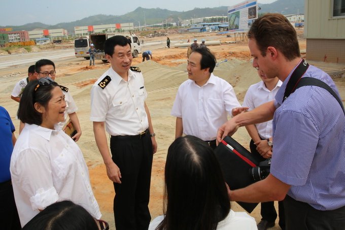 9月15日,汕頭海關(guān)關(guān)長王煒帶隊到揭陽開展調(diào)研,首站抵達中德金屬生態(tài)城,實地考察在建項目,對園區(qū)建設(shè)規(guī)模及創(chuàng)新國際合作方式的做法予以充分肯定。市委書記、市人大常委會主任嚴(yán)植嬋,市委副書記、市長陳東參加活動。