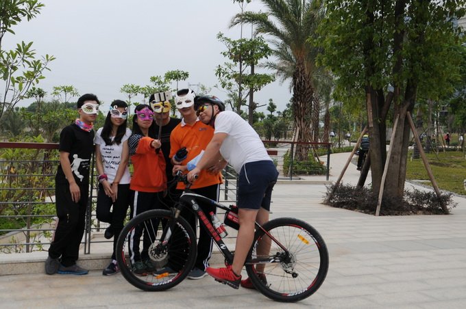 抵達中德金屬生態(tài)城后,騎友們在形成“一河兩岸”生態(tài)風景的雕塑公園參觀游賞。隨后,大家前往萬畝森林公園,開始萬圣節(jié)主題活動。作為活動的壓軸大戲,“撕名牌”游戲將現(xiàn)場的氣氛推向了高潮。一時間,整個森林公園歡樂爆棚,倍增了生機與活力。
