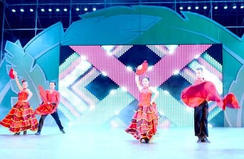 銀星廣場(chǎng)上,燈光閃爍,舞臺(tái)上,來(lái)自歐洲的歌舞團(tuán)用精彩的舞蹈表演吸引了大批觀眾觀看,歌舞團(tuán)以一曲形式開(kāi)放自由的踢踏舞開(kāi)啟表演,舞者跟隨舞曲的節(jié)奏,通過(guò)趾尖與腳跟的相互配合,發(fā)出響亮的“踢踢踏踏”聲音,活潑歡快的表演獲得臺(tái)下觀眾的陣陣掌聲。隨后,光影陸離的光影舞、富有異域風(fēng)情的肚皮舞等精妙的節(jié)目更是讓大家贊嘆不已,現(xiàn)場(chǎng)觀眾紛紛拿出手機(jī)記錄一個(gè)個(gè)精彩的瞬間,整個(gè)廣場(chǎng)成為一片歡樂(lè)的海洋。