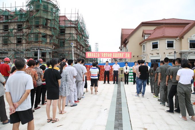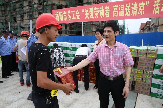 立秋雖過,暑熱難退。為做好高溫期間勞動者的服務工作,8月10日下午,揭陽市總工會走進中德金屬生態(tài)城,開展“關(guān)愛勞動者,高溫送清涼”活動,為奮戰(zhàn)在項目建設(shè)一線的職工送去解暑降溫的慰問品,傳達組織的問候與關(guān)懷之情。