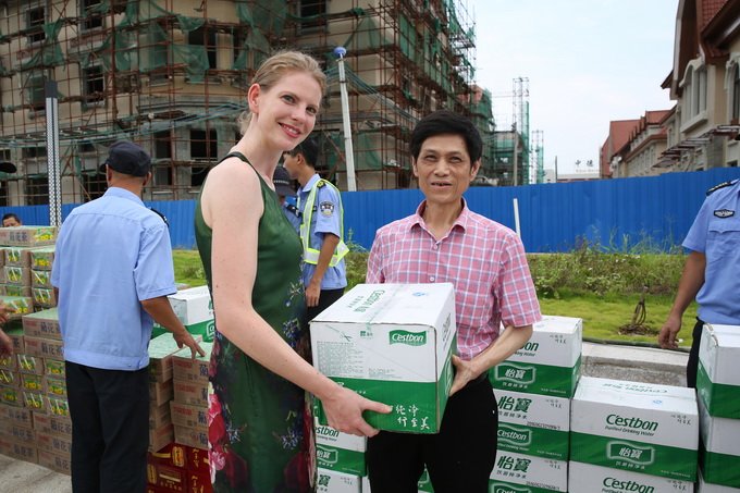 黃光瑞不忘向在園區(qū)工作的德國職工送去清涼與愜意